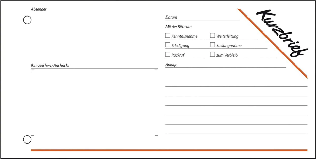 - für die schnelle Information oder als kurzer Begleitbrief zu Warensendungen - der Kurzbrief