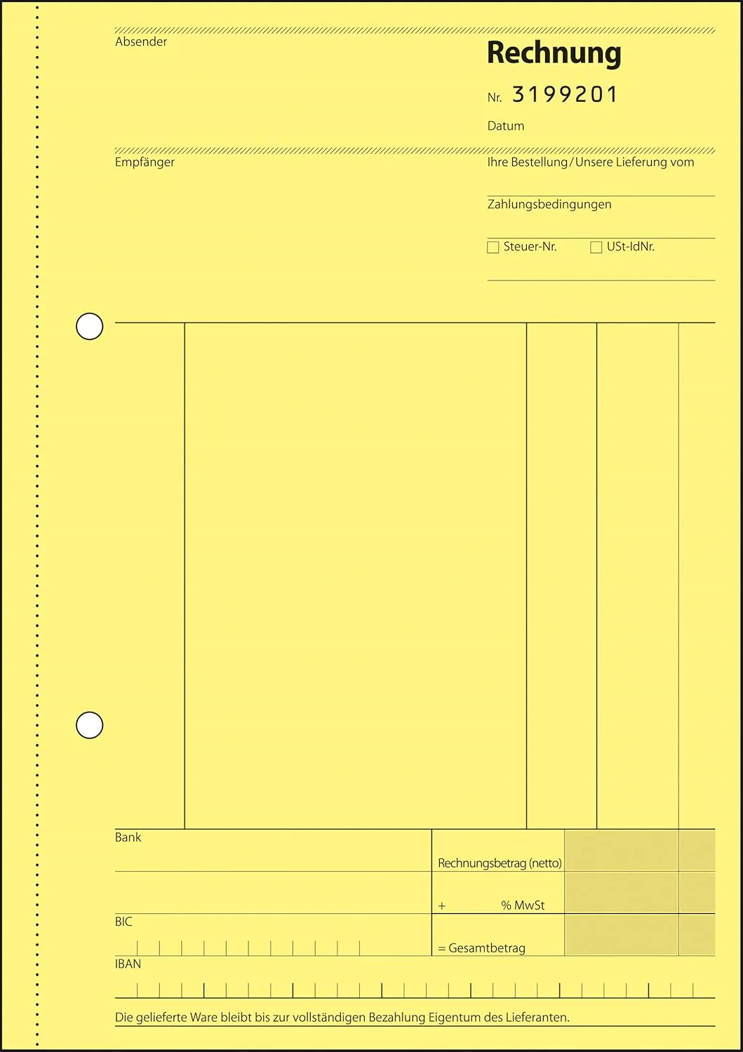 - selbstdurchschreibendes Rechnungsbuch mit vorgedruckter 7stelliger Rechnungsnummer zur