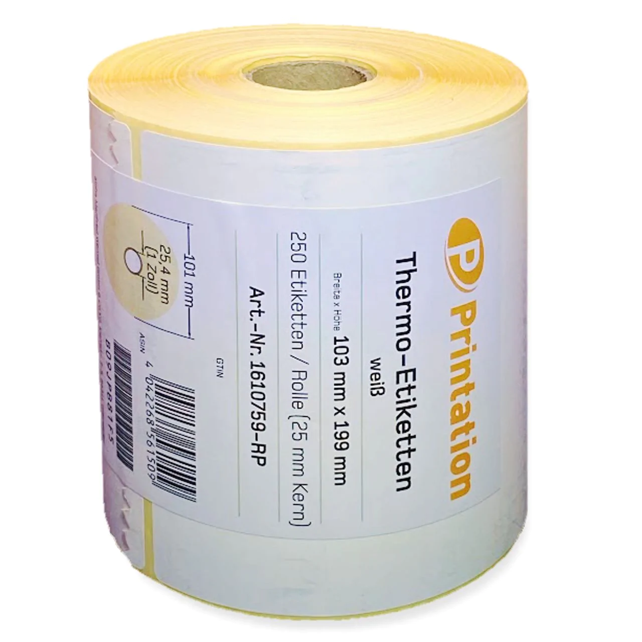 PRINTATION Thermo-Etiketten auf Rolle (B103x199mm), 250 Stück, Rollenkern 25mm